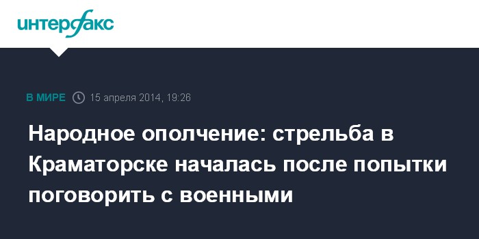 Москва. 15 апреля. INTERFAX.RU - Представитель народного ополчения востока Украины Павел Петров утверждает, что бой под Краматорском начался после того, как местные жители попытались войти в местную воинскую часть и уговорить украинских военных перейти на сторону сил самообороны.