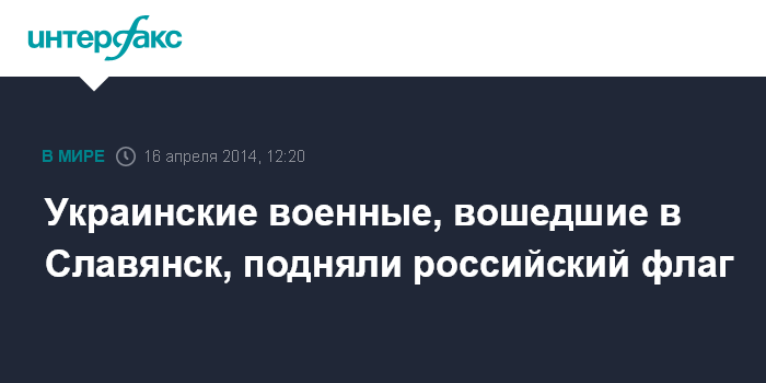 Москва. 16 апреля. INTERFAX.RU - Военнослужащие украинской армии, вошедшие в Славянск, подняли российский флаг, дав тем самым понять, что они перешли на сторону сторонников федерализации.