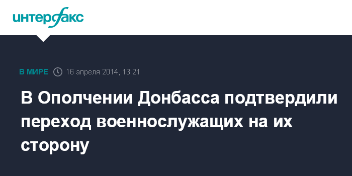 Москва. 16 апреля. INTERFAX.RU - В руководстве Донецкой народной республики подтверждают, что направленные Киевом в Славянск военнослужащие украинской армии переходят на сторону приверженцев идеи федерализации.