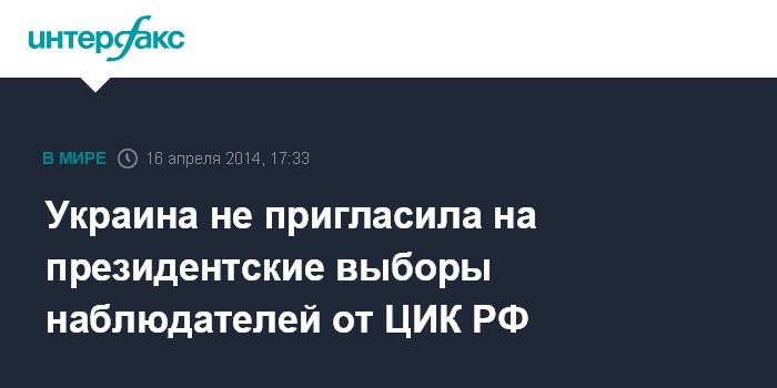 Москва. 16 апреля. INTERFAX.RU - В ЦИК РФ не получали приглашения от украинских коллег приехать наблюдателями на выборы президента, сообщил журналистам глава ведомства Владимир Чуров в среду.