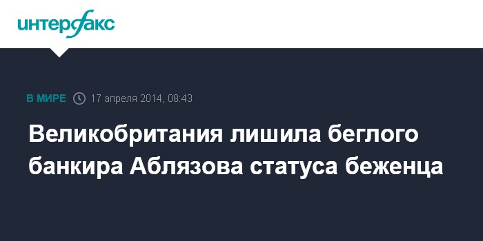 Москва. 17 апреля. INTERFAX.RU - Бывший председатель совета директоров БТА Банка Мухтар Аблязов лишен в Великобритании статуса беженца, который был получен им в 2011 году, сообщила Financial Times.