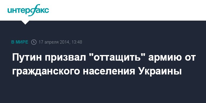 "Сейчас мы слышим призывы к тому, чтобы люди на юго-востоке сложили оружие. Но я своим партнерам говорю: это правильный, замечательный призыв. Но тогда армию оттащите от гражданского населения", - заявил Путин в четверг в ходе "прямой линии".