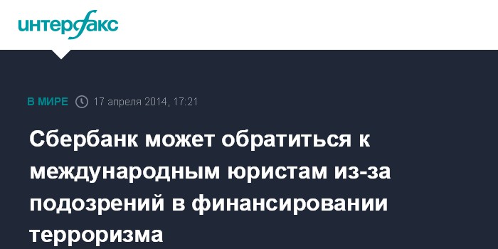 Сбербанк может обратиться к международным юристам из-за подозрений в финансировании терроризма