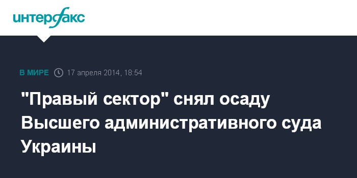 Москва. 17 апреля. INTERFAX.RU - Активисты партии "Правый сектор" сняли осаду здания Высшего административного суда Украины (ВАСУ).