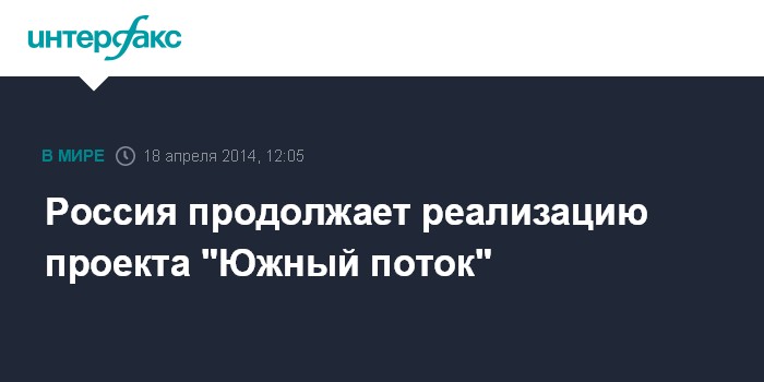 Москва. 18 апреля. INTERFAX.RU - Россия продолжает реализацию проекта "Южный поток", сообщил министр энергетики РФ Александр Новак на пресс-конференции в пятницу в Москве.