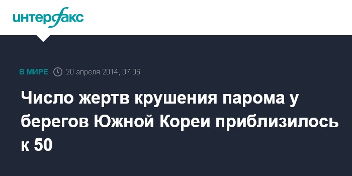 Москва. 20 апреля. INTERFAX.RU - Число погибших при крушении южнокорейского парома, затонувшего в среду возле острова Чеджу, продолжает расти, сообщает британская телерадиовещательная корпорация Би-би-си со ссылкой на представителя береговой охраны Южной Кореи.