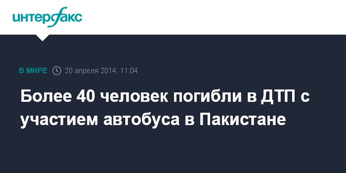 Москва. 20 апреля. INTERFAX.RU - Жертвами столкновения пассажирского автобуса с трактором в Пакистане стали 42 человека, 17 пострадали, сообщили в воскресенье западным журналистам сотрудники местной полиции. Автобус следовал в город Карачи на юге страны.