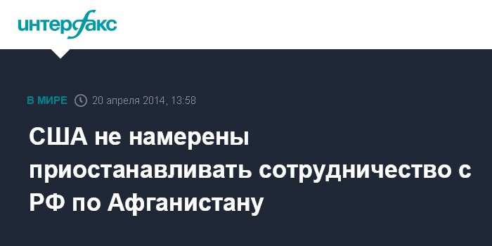 США не намерены приостанавливать сотрудничество с РФ по Афганистану