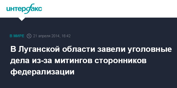 Москва. 21 апреля. INTERFAX.RU - Призывы к федерализации на митингах в Луганской области прокуратура расценивает как сепаратистские.