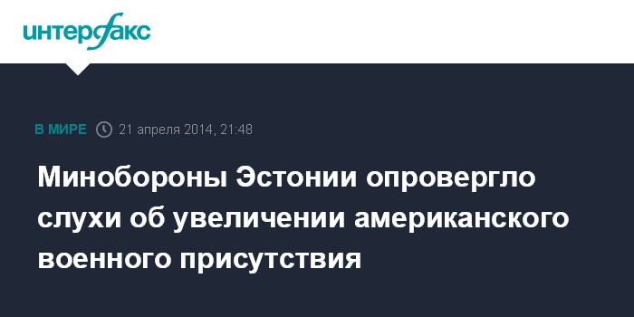 Таллин. 21 апреля. INTERFAX.RU - Министерство обороны Эстонии опровергло сообщения американских СМИ, что Вашингтон намерен направить сюда 150 солдат.