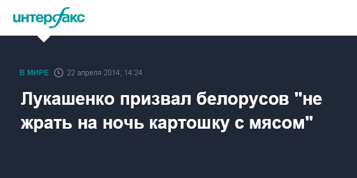 "Зачем ты на ночь жрешь картошку с мясом? Как ты будешь спать?", - задал он риторический вопрос. "Не ешь с мясом, съешь с селедкой", - продолжил белорусский лидер.