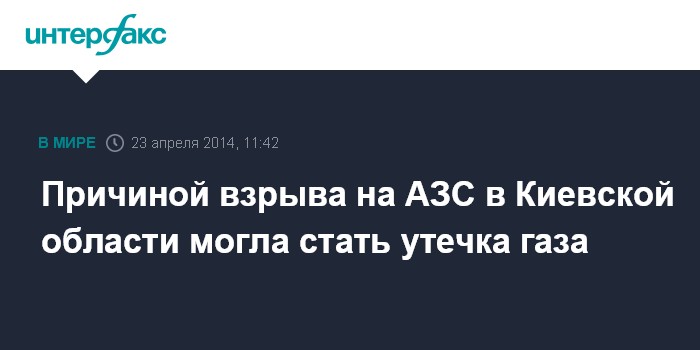 Москва. 23 апреля. INTERFAX.RU - По предварительным данным, взрыв на автозаправочной станции в Переяславе-Хмельницком в Киевской области был вызван утечкой газа, сообщил первый вице-премьер правительства Украины Виталий Ярема.