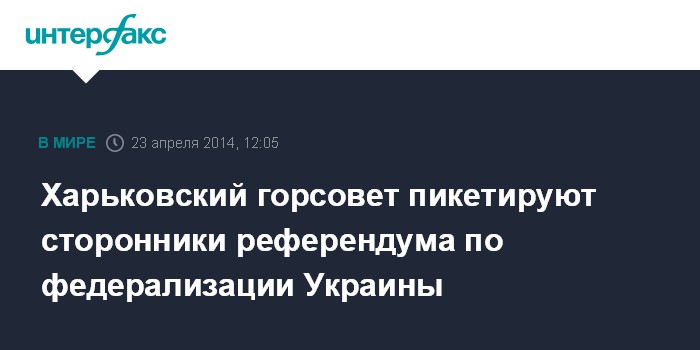 Москва. 23 апреля. INTERFAX.RU - Здание Харьковского городского совета в среду пикетируют сторонники референдума по вопросу федерализации и приверженцы унитарной Украины.