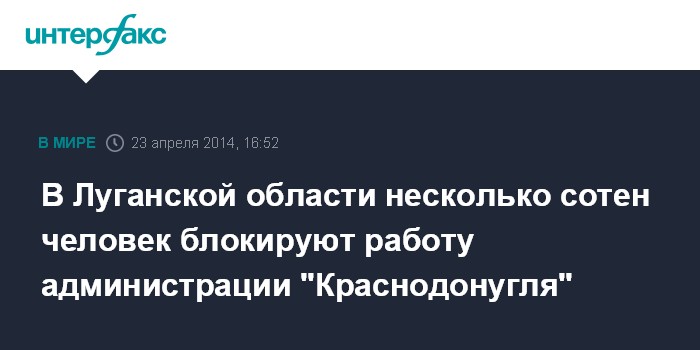 Как сообщили агентству "Интерфакс" в пресс-службе компании, 22 апреля в Краснодоне после митинга за федерализацию и проведение референдума, который проходил на площади Ленина, около 100 человек спортивного телосложения переместились к административному зданию "Краснодонугля". Провозглашаемыми лозунгами они провоцировали шахтеров, возвращавшихся с рабочей смены, призывая к участию в митинге.