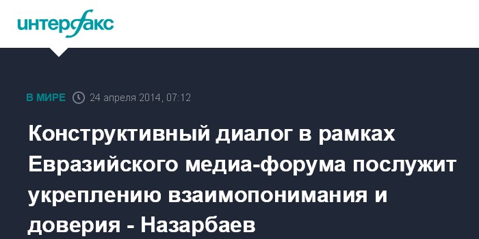 Конструктивный диалог в рамках Евразийского медиа-форума послужит укреплению взаимопонимания и доверия - Назарбаев