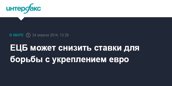 Москва. 24 апреля. INTERFAX.RU - Европейский центральный банк (ЕЦБ) уделяет все больше значения высокому курсу евро, в связи с чем может снизить базовые процентные ставки, заявил глава ЕЦБ Марио Драги, выступая с речью в Амстердаме в четверг, слова которого передает агентство Bloomberg.