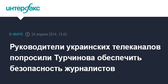 "Мы обращаемся к вам с требованием выполнить законодательство Украины в отношении защиты прав журналистов, а именно обеспечить безопасность работы журналистов в отдельных городах на востоке Украины силами сотрудников СБУ, а также обеспечить бесперебойное вещание в восточных регионах", - обращаются руководители телеканалов к Турчинову.