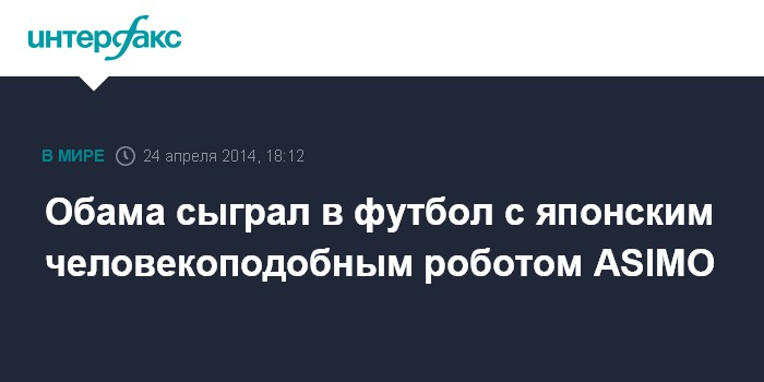 Москва. 24 апреля. INTERFAX.RU - Президент США Барак Обама оценил возможности японского человекоподобного робота ASIMO и сыграл с ним в футбол в Национальном музее передовой науки и техники в Токио, сообщает Washington Post.