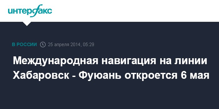 Международная навигация на линии Хабаровск - Фуюань откроется 6 мая