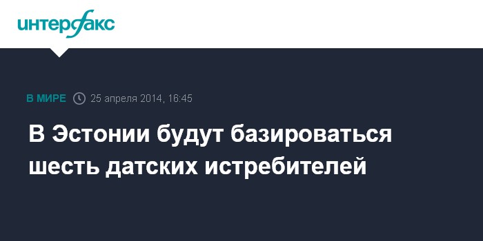 Москва. 25 апреля. INTERFAX.RU - В Эстонии на авиабазе Эмари (Amari) близ Таллина будут базироваться шесть датских истребителей, сообщил премьер-министр Эстонии Таави Рыйвас.