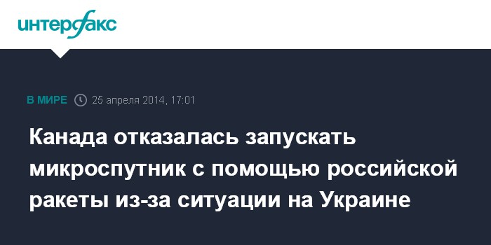 Канада отказалась запускать микроспутник с помощью российской ракеты из-за ситуации на Украине