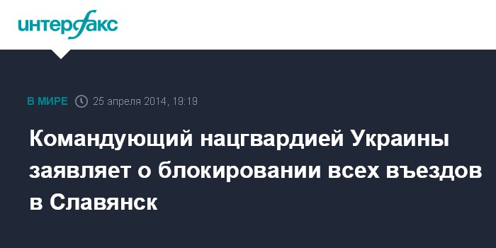 Командующий нацгвардией Украины заявляет о блокировании всех въездов в Славянск