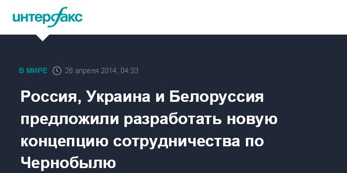 Москва. 26 апреля. INTERFAX.RU - Делегации Белоруссии, России и Украины при ООН выступили с совместным заявлением, в котором призвали разработать новую концепцию международного сотрудничества по преодолению последствий чернобыльской трагедии, говорится в сообщении на официальной странице МИД РФ в Facebook.