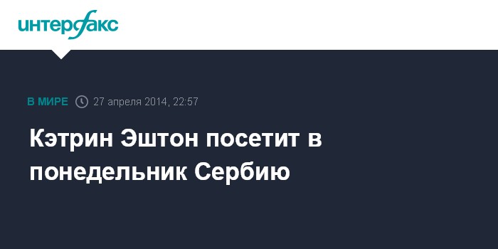Брюссель. 27 апреля. INTERFAX.RU - В понедельник, 28 апреля, верховный представитель ЕС по иностранным делам Кэтрин Эштон нанесет визит в Сербию, сообщила пресс-служба главы европейской дипломатии.