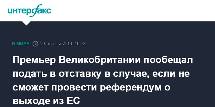 Ранее он заявлял, что референдум о выходе Великобритании из ЕС состоится в 2017 году в случае победы консерваторов на предстоящих в 2015 году парламентских выборах.