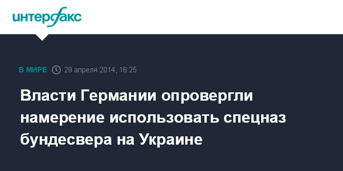 Москва. 29 апреля. INTERFAX.RU - Правительство Германии опровергло появившиеся в СМИ сообщения о планах использования спецподразделения бундесвера для освобождения захваченных на востоке Украины наблюдателей ОБСЕ.