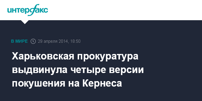 Москва. 29 апреля. INTERFAX.RU - Следствие рассматривает четыре основные версии покушения на главу Харькова Геннадия Кернеса. Об этом сообщил заместитель прокурора Харьковской области Константин Турков.