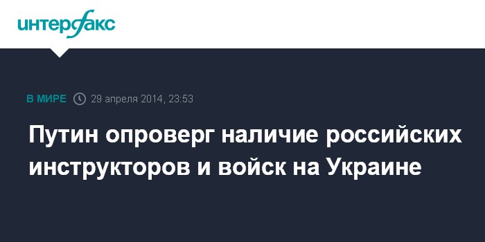 Москва. 29 апреля. INTERFAX.RU - Президент РФ Владимир Путин заявил, что на Украине нет российских военнослужащих.