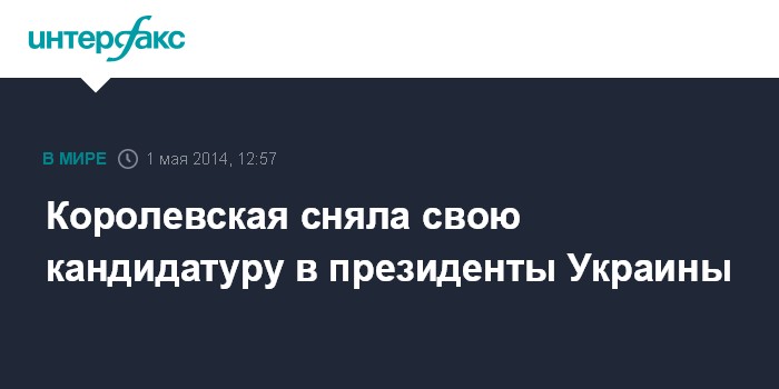 В пресс-службе ЦИК "Интерфаксу" сообщили, что Королевская подала заявление в 11:30 (12:30 по московскому времени). Другие кандидаты в президенты Украины пока не отказывались от участия в выборах.