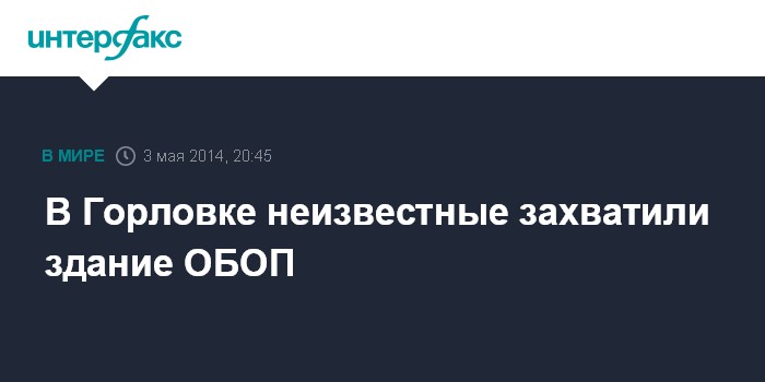 Киев. 3 мая. ИНТЕРФАКС-УКРАИНА - В субботу вечером группе неизвестных лиц в масках и камуфляже после нескольких попыток удалось захватить здание Горловского ОБОПа, сообщает сайт 06242.com.ua.