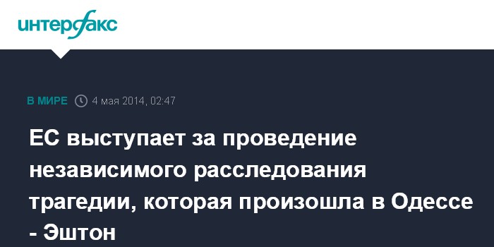 ЕС выступает за проведение независимого расследования трагедии, которая произошла в Одессе - Эштон