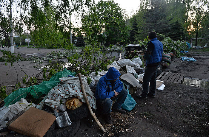 Согласно официальным данным Киева, военные полностью взяли контроль над внешним радиусом города. В настоящее время 14 блокпостов на въездах и выездах Славянска контролируются ими.
