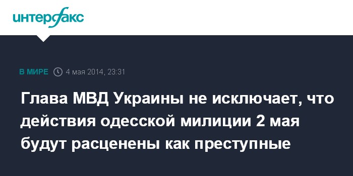 Глава МВД Украины не исключает, что действия одесской милиции 2 мая будут расценены как преступные