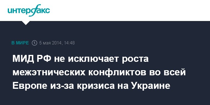 МИД РФ не исключает роста межэтнических конфликтов во всей Европе из-за кризиса на Украине