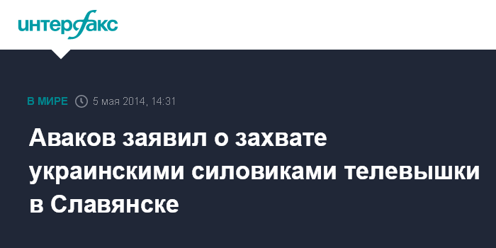 "Вышка в Славянске полностью под контролем украинских властей, вещают украинские каналы", - сказал Аваков журналистам на блокпосте на въезде в город.