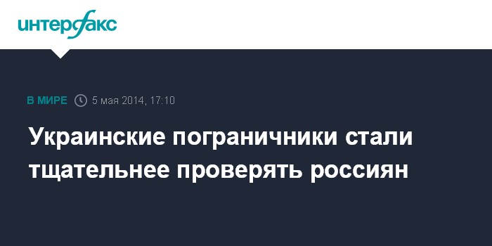 Москва. 5 мая. INTERFAX.RU - В связи со сложной ситуацией на востоке Украины местные пограничники стали тщательнее проверять въезжающих в страну россиян. Об этом в понедельник, 5 мая, сообщил на брифинге в Киеве представитель украинского МИДа Евгений Перебийнис.