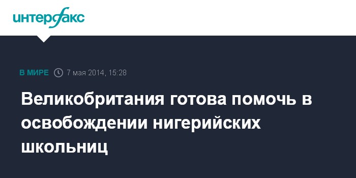 Москва. 7 мая. INTERFAX.RU - Великобритания готова направить силы специального назначения и разведывательные самолеты для участия в операции по освобождению школьниц, похищенных исламистской группировкой "Боко Харам" в середине апреля, сообщила в среду дубайская газета Gulf News.