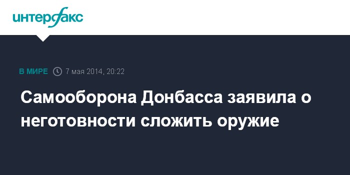 Москва. 7 мая. INTERFAX.RU - Силы самообороны Донбасса в одностороннем порядке не собираются складывать оружие, заявил "Интерфаксу" сопредседатель правительства Донецкой народной республики Мирослав Руденко.
