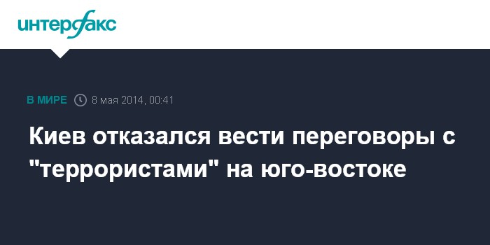 Москва. 8 мая. INTERFAX.RU - Украинские власти готовы к диалогу с политическими силами, представителями регионов и общественности, но не пойдут на переговоры с "террористами", заявили в министерстве иностранных дел Украины.