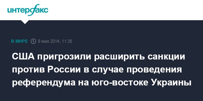 Москва. 8 мая. INTERFAX.RU - Администрация президента США Барака Обамы предупредила, что может резко расширить санкции против России, если референдум на юго-востоке Украины все же будет проведен, сообщает телеканал Fox News.