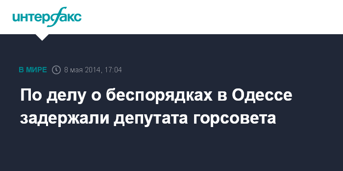 Москва. 8 мая. INTERFAX.RU - Милиция задержала депутата горсовета Одессы по делу о событиях 2 мая, говорится в сообщении на сайте МВД Украины.