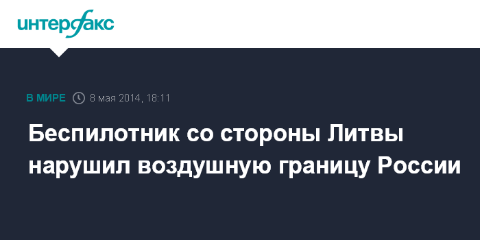 Москва. 8 мая. INTERFAX.RU - В Калининградской области на российско-литовской границе пресечен полет беспилотного летательного аппарата со стороны Литвы, сообщили в четверг "Интерфаксу" в пресс-службе Пограничного управления ФСБ России по Калининградской области.