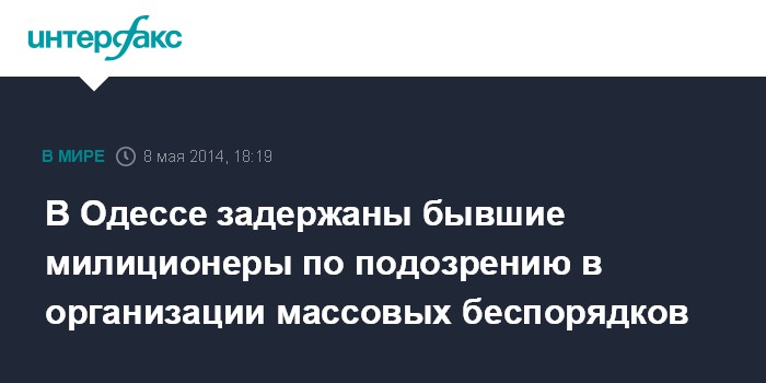 Москва. 8 мая. INTERFAX.RU - По делу об организации массовых беспорядков в Одессе, которые привели к многочисленным жертвам, задержаны бывшие сотрудники правоохранительных органов, сообщает сайт МВД Украины в четверг.