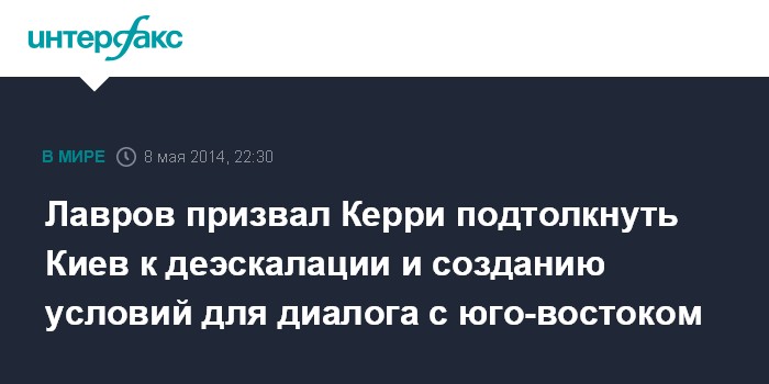 Лавров призвал Керри подтолкнуть Киев к деэскалации и созданию условий для диалога с юго-востоком