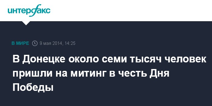 Москва. 9 мая. INTERFAX.RU - Около семи тысяч человек участвуют в митинге в Донецке по случаю Дня Победы, передает корреспондент "Интерфакс-Украина".
