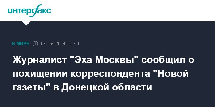 Москва. 12 мая. INTERFAX.RU - Неизвестные люди похитили на Украине корреспондента "Новой газеты", сообщила радиостанция "Эхо Москвы".